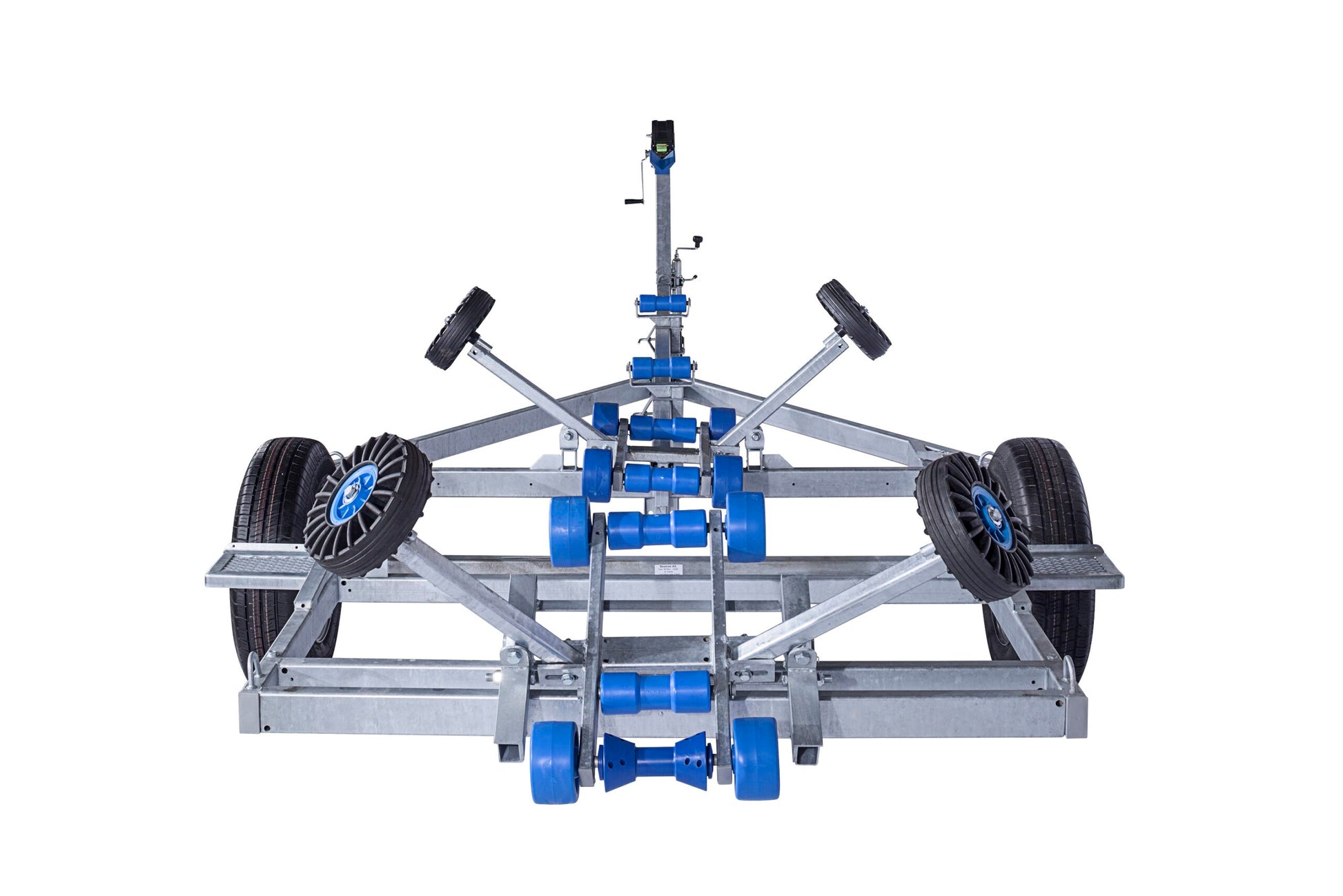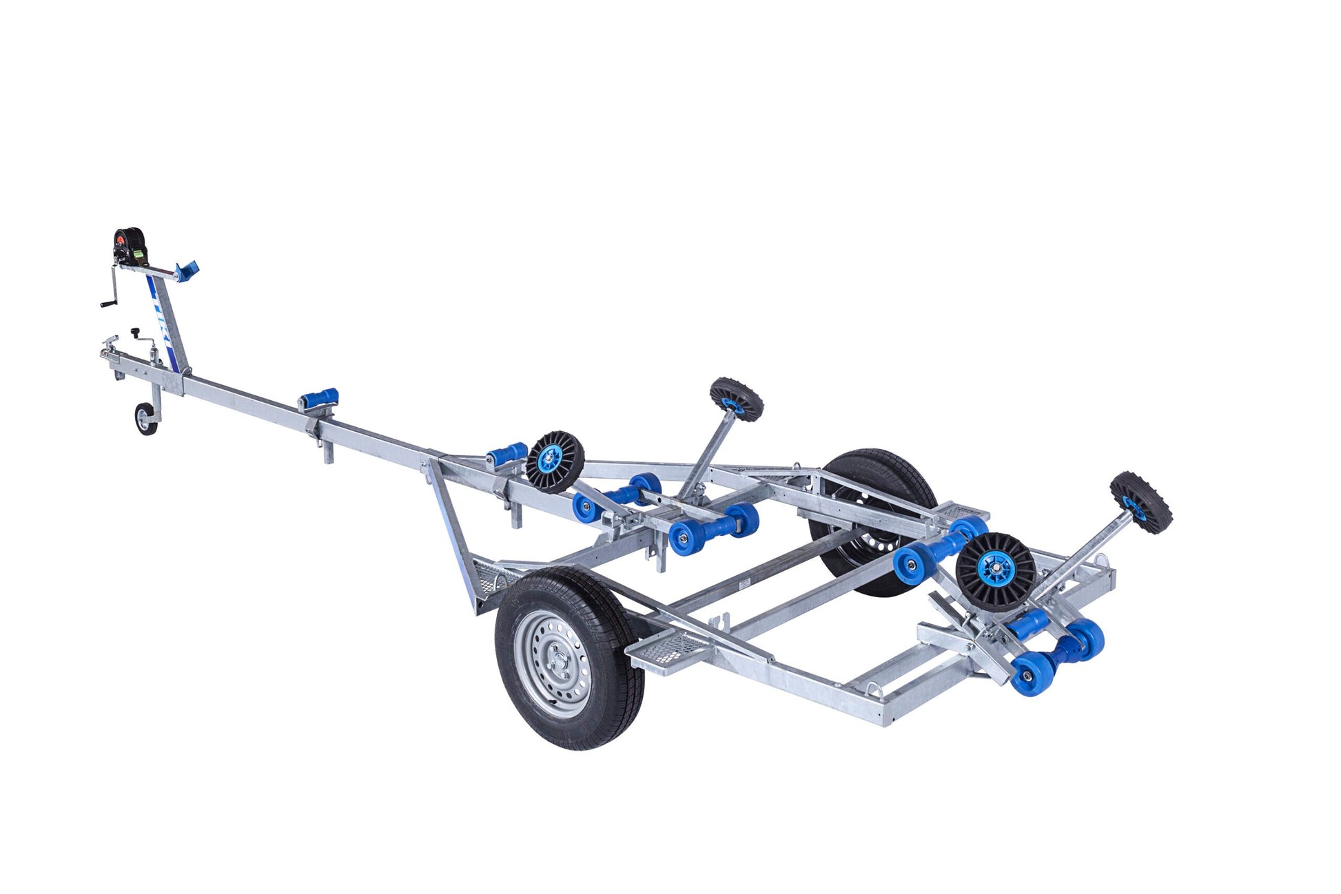 Vattentäta nav säkerställer längre livslängd för lagren. Släpet är utrustat med ett justerbart vinschtorn som kan anpassas efter båtens mått och form. Vinschen med broms garanterar bekväm och säker användning. Justerbara sidostöd och kölrullar hjälper till att styra båten upp på släpet.